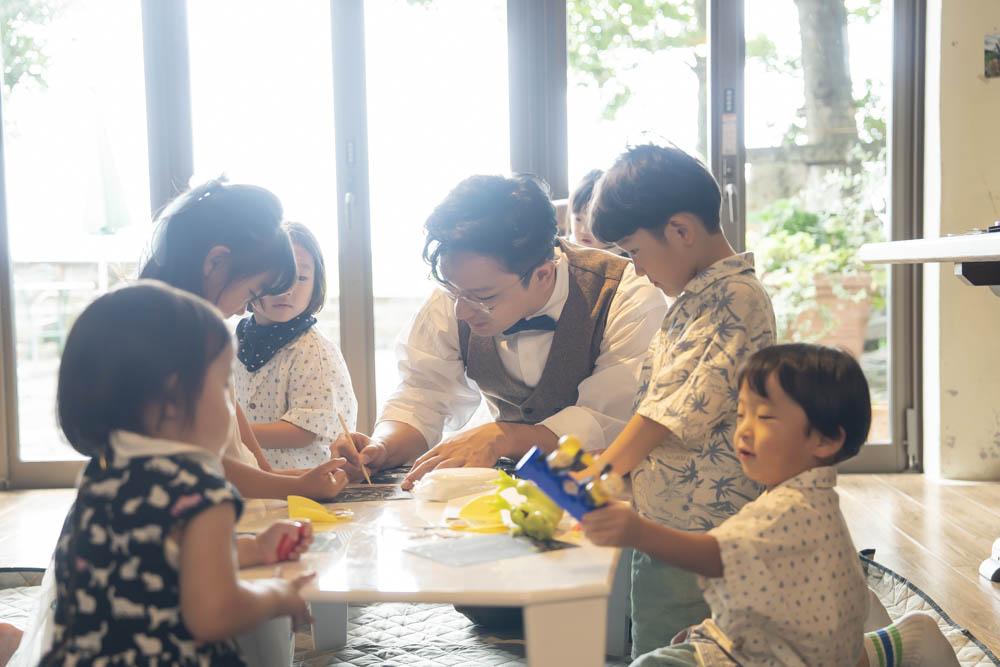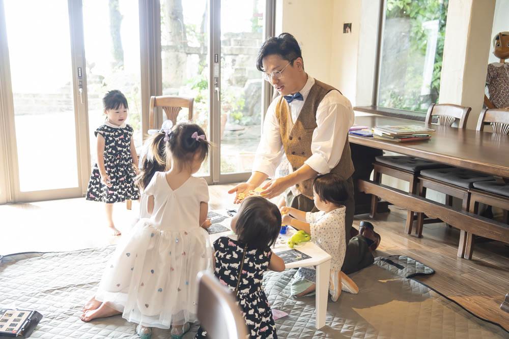子供達が飽きてきた頃、キッズスペースでお遊びのお時間。新郎みずから遊んでくれます。