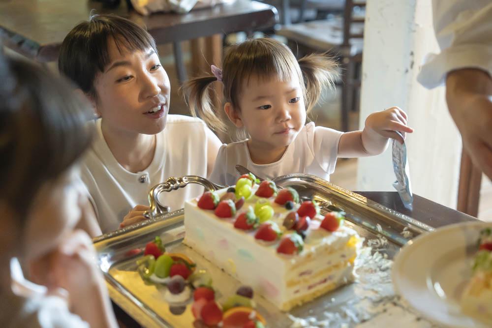 さっきまで遊んでいたキッズたちも、ケーキの登場で集まってきました笑